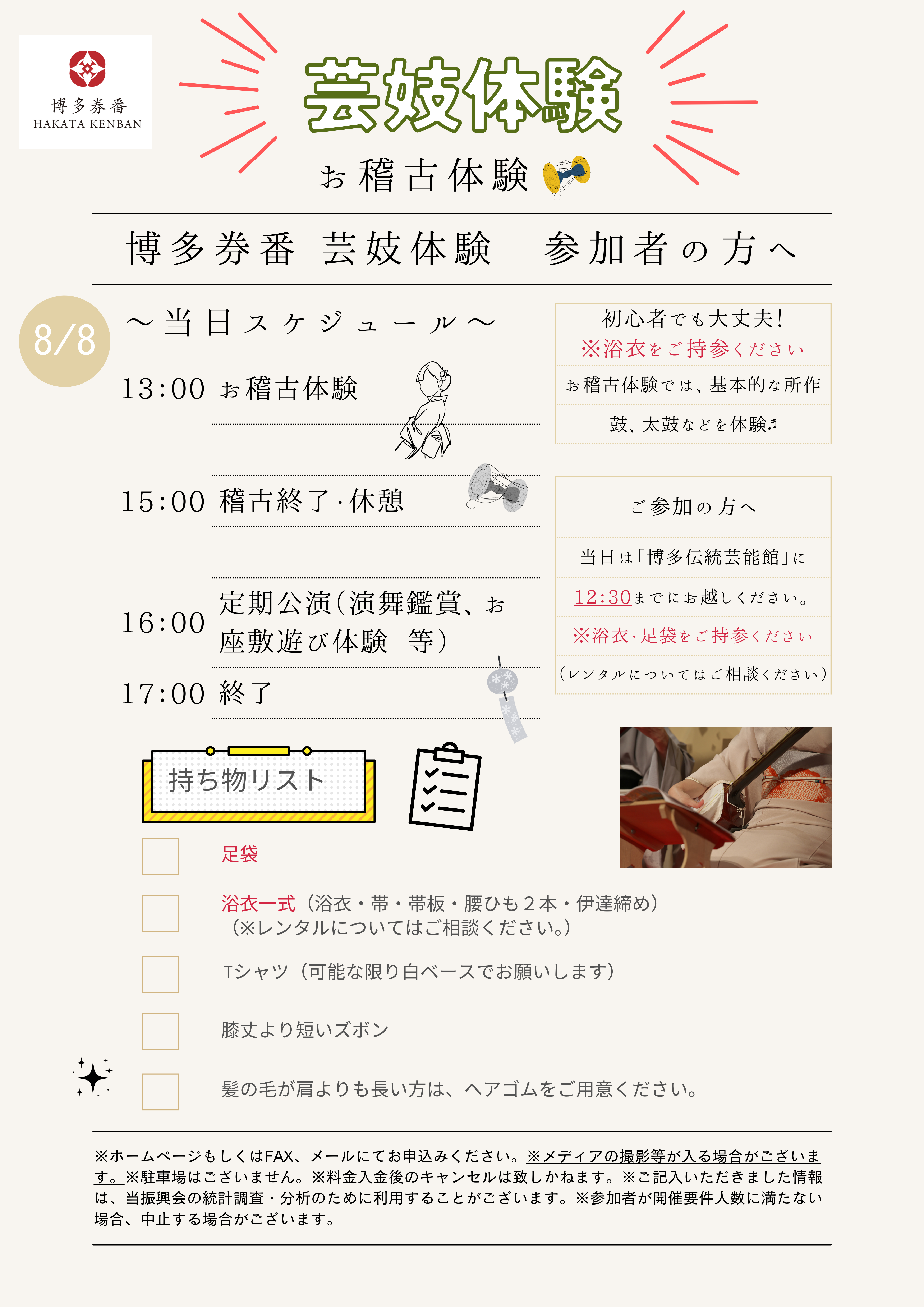 This facility also serves as the Hakata Kenban (geisha management office) and as a rehearsal area.